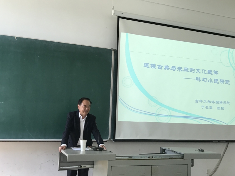于长敏教授应邀为我校日语专业学生做题为《连接古典与未来的文化载体——科幻小说研究》的学术报告会。日语系主任曾妍、教师林进、王爱军、刘小平、万丽娜、龙慧星、王佳璐、金香梅和日语专业学生一起聆听了这场精彩的学术报告会。