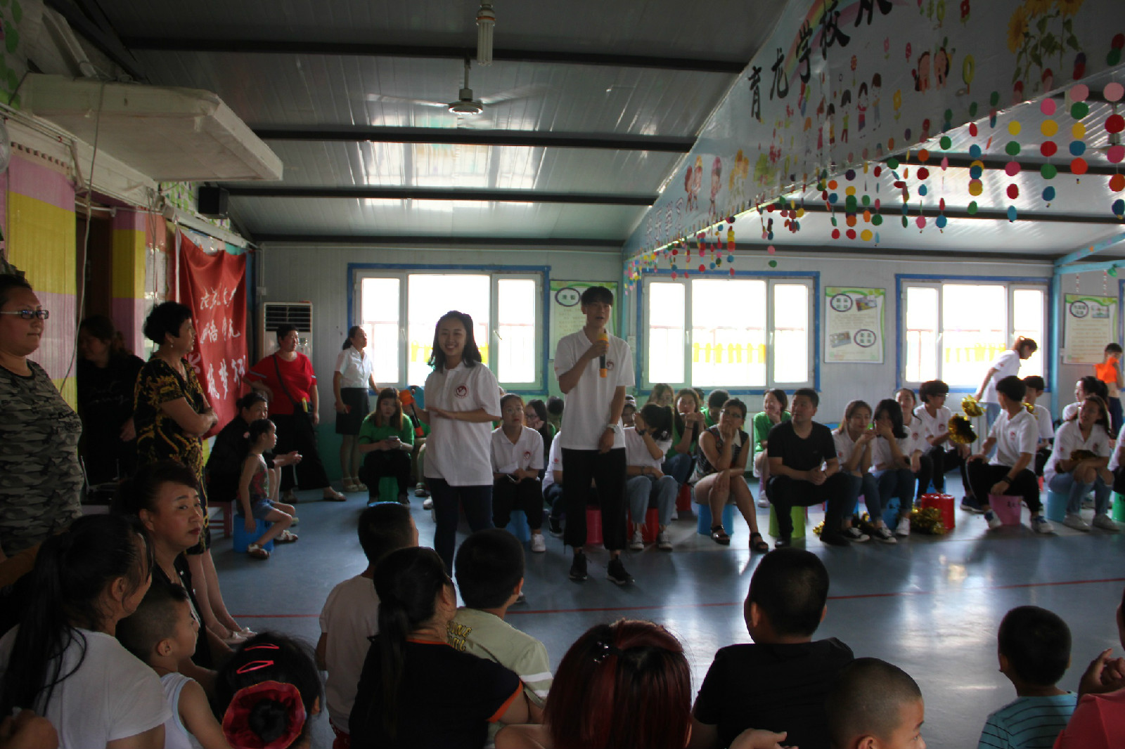 志愿者同学们现场表演了歌曲《Decision》、《小酒窝》以及欢快的啦啦操舞蹈,现场小朋友和同学们一起开心的互动起来,全场掌声不断,现场气氛热烈而欢快,节目表演后,进行了爱心捐赠活动,赵海涛老师代表学院捐赠给孩子们一些体育用品,希望他们能健康快乐地成长;最后,赵海涛老师发表讲话,对育龙学校为同学们提供这次宝贵的社会实践机会表达了衷心的感谢,并希望以此次活动为契机加深两校合作,建立长期的支援服务关系,并向孩子们表达了衷心的祝愿。