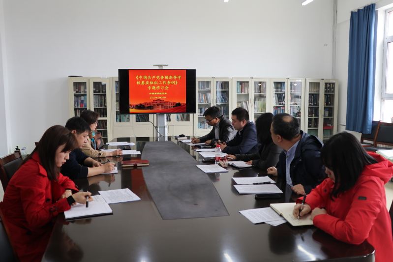 党委召开《中国共产党普通高等学校基层组织工作条例》专题学习会。党委书记李文章、副院长王轶、两办主任及各党支部书记参加会议。