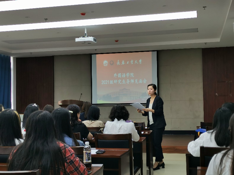 研究生导师以及2021级全体研究生出席了本次见面会。曾妍副院长主持会议,王轶副院长发表讲话。