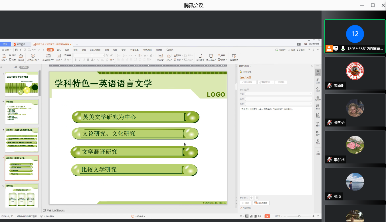 的发展历史、师资力量、外国语言文学一级学科硕士点的方向设置、丰富的学术及社会实践活动、研究生奖助体系等方面进行了细致地讲解。