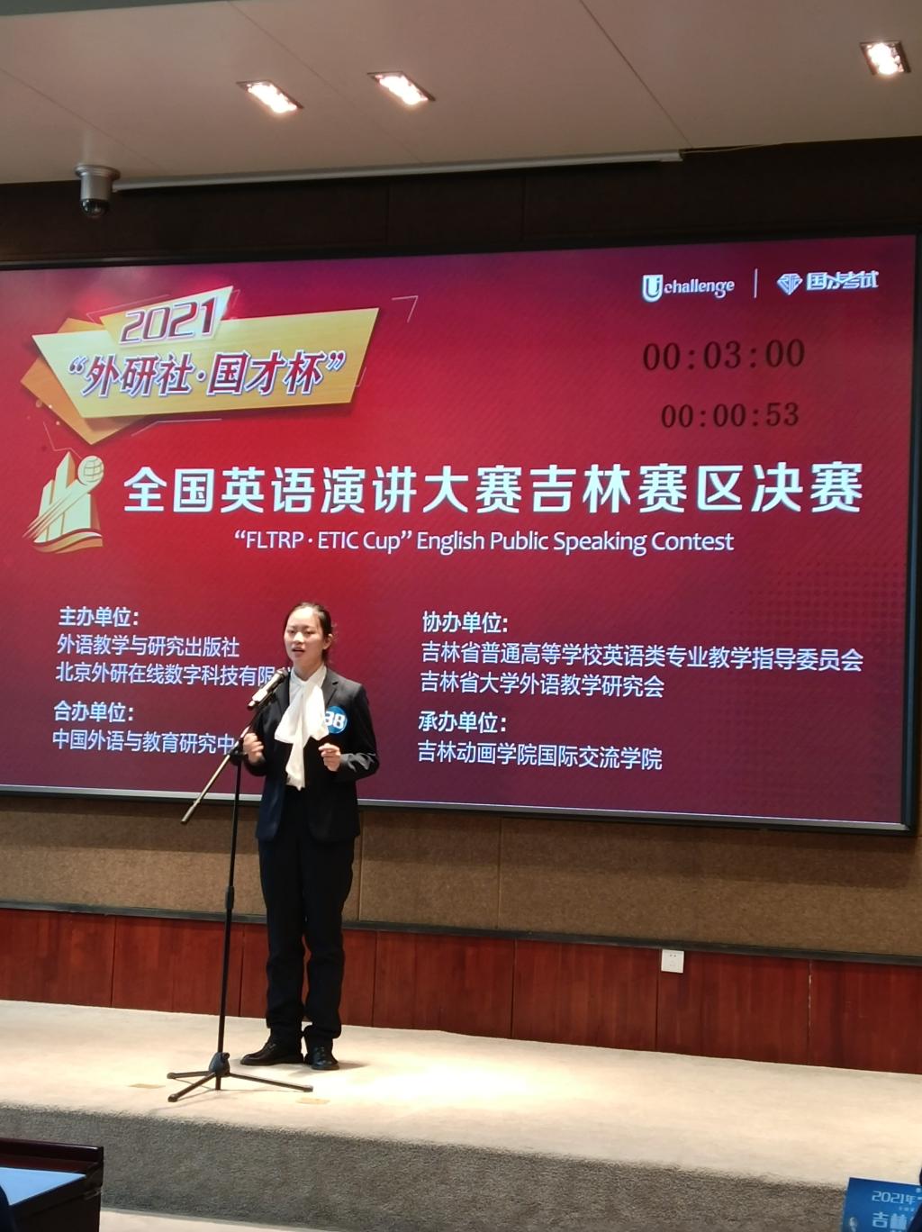 公共外语教学部老师指导的王蕊同学从52名参赛选手中脱颖而出,荣获特等奖,并将与来自东北师范大学、空军航空大学的两名同学代表吉林省前往北京参加全国总决赛。