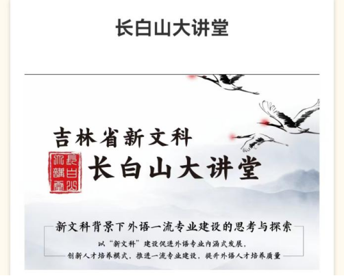组织教师线上参加了吉林省新文科(外国语言文学类)“长白山大讲堂”。