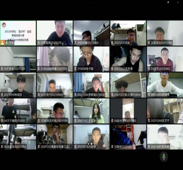 初赛在腾讯会议平台顺利进行。本次比赛主要面向全校2021级本科学生,共有1386人报名参加阅读比赛,1084人报名参加写作比赛。