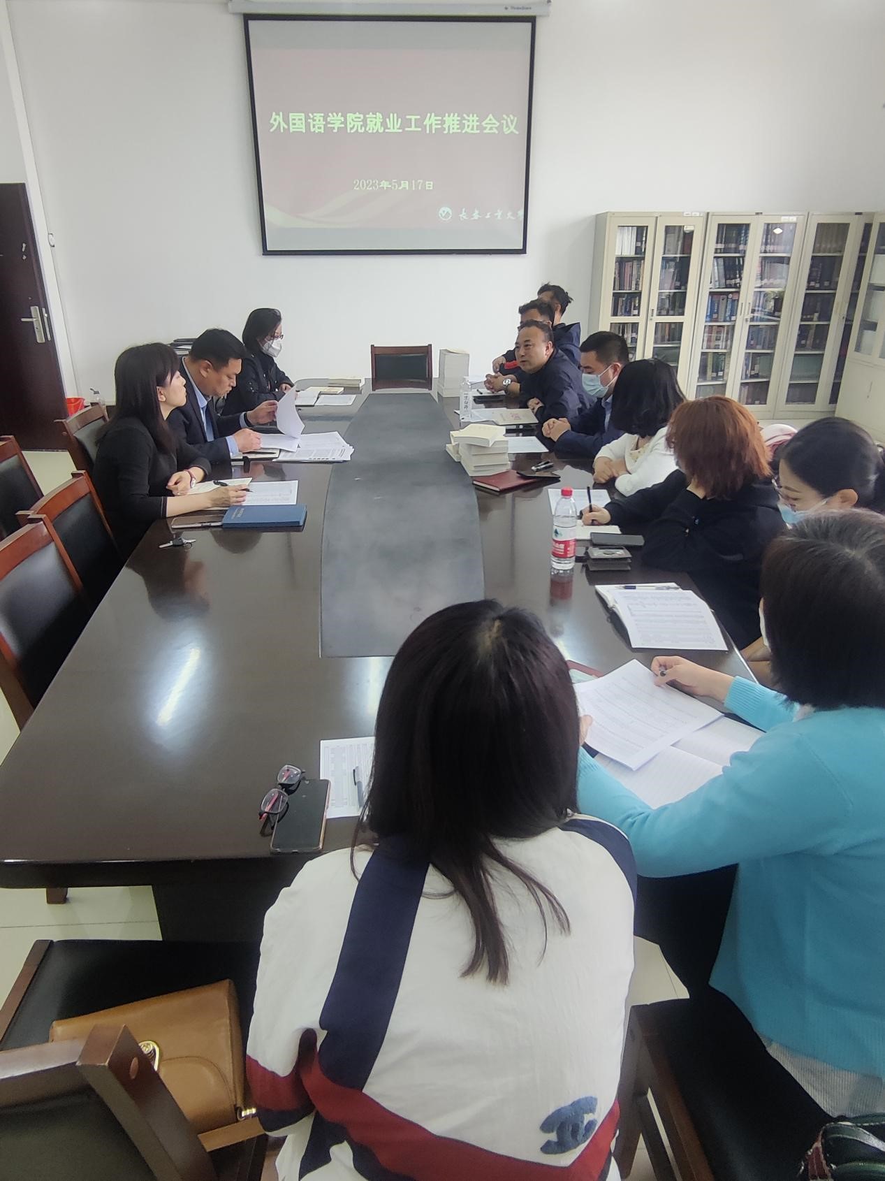 开展就业工作推进会议。学院领导班子、各党支部书记,各系主任、副主任参加此次会议。