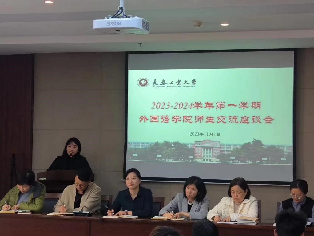 召开英日俄及翻译专业1-3年级师生座谈会。本次会议旨在实现师生交流,关心同学们的生活状况、提出问题并及时解决。院长王轶、副书记于伟、副院长李秀文、副院长曾筵、英语系主任刘宇、日语系教师万丽娜、俄语系张微老师和各班学生代表参加本次座谈会,会议由李秀文副院长主持。