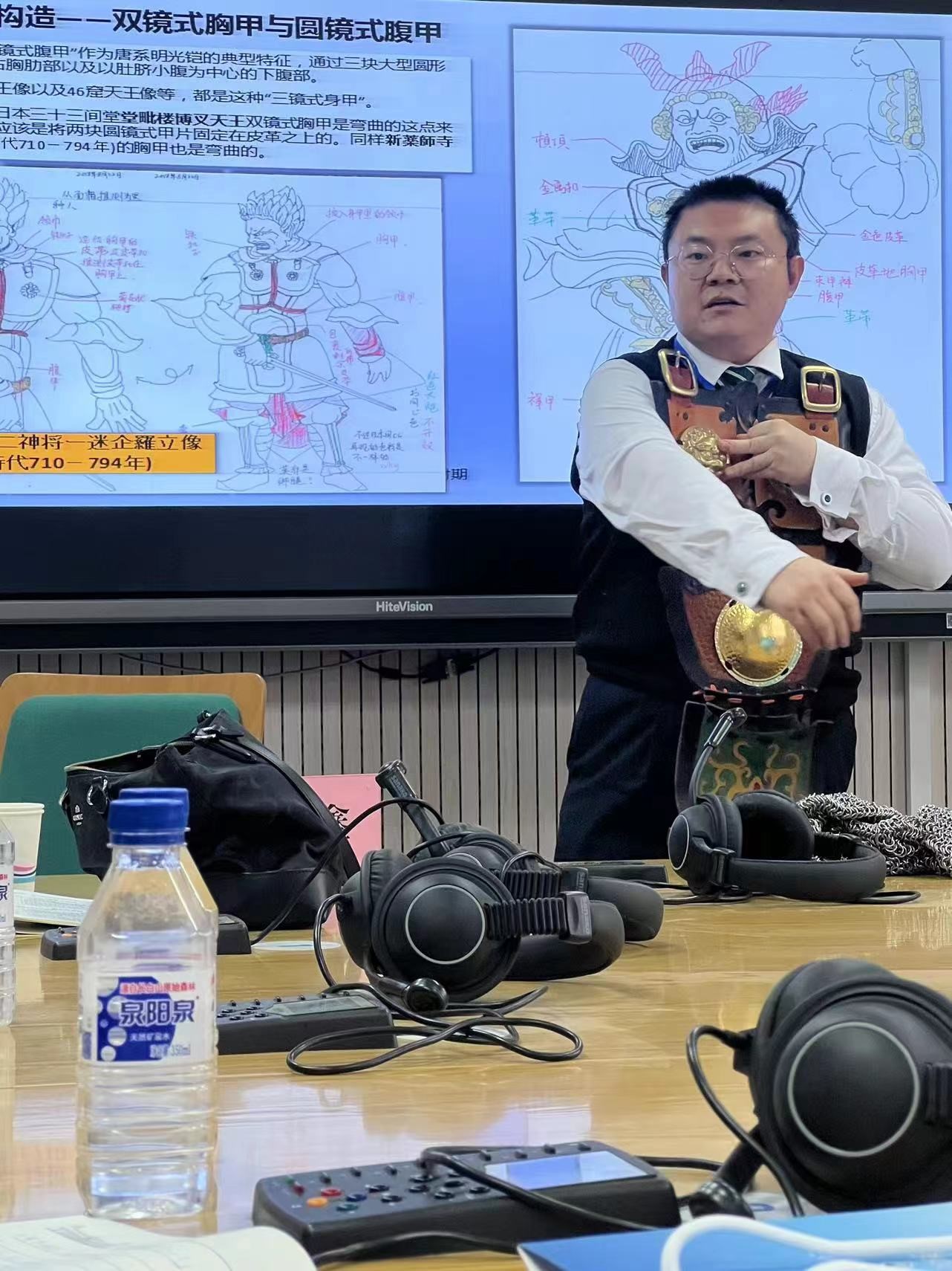 日语系主任宋卓时老师应邀担任第七分会场的主持人,向国内外参会教师展示了其制作的唐代明光铠复原件,并做了题为《结合日本存世资料来看唐代明光铠的构造》的讲座,获得一致好评。