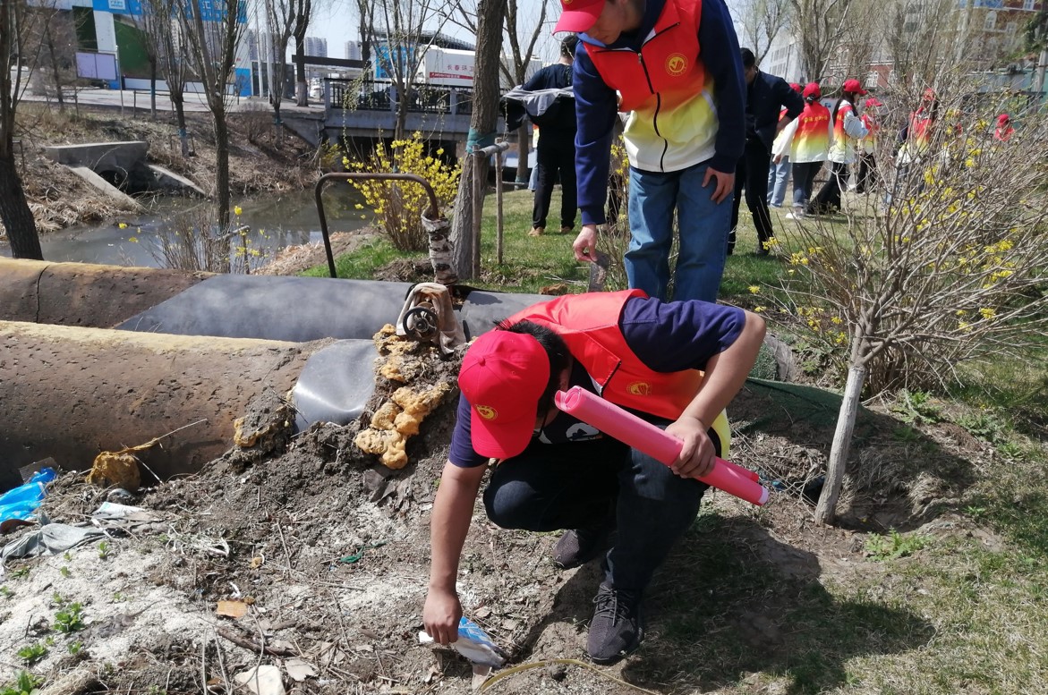 大学生志愿者来到富锋街道富裕河畔,与长春市朝阳区河长制办公室联合开展“护水常清”志愿服务活动。