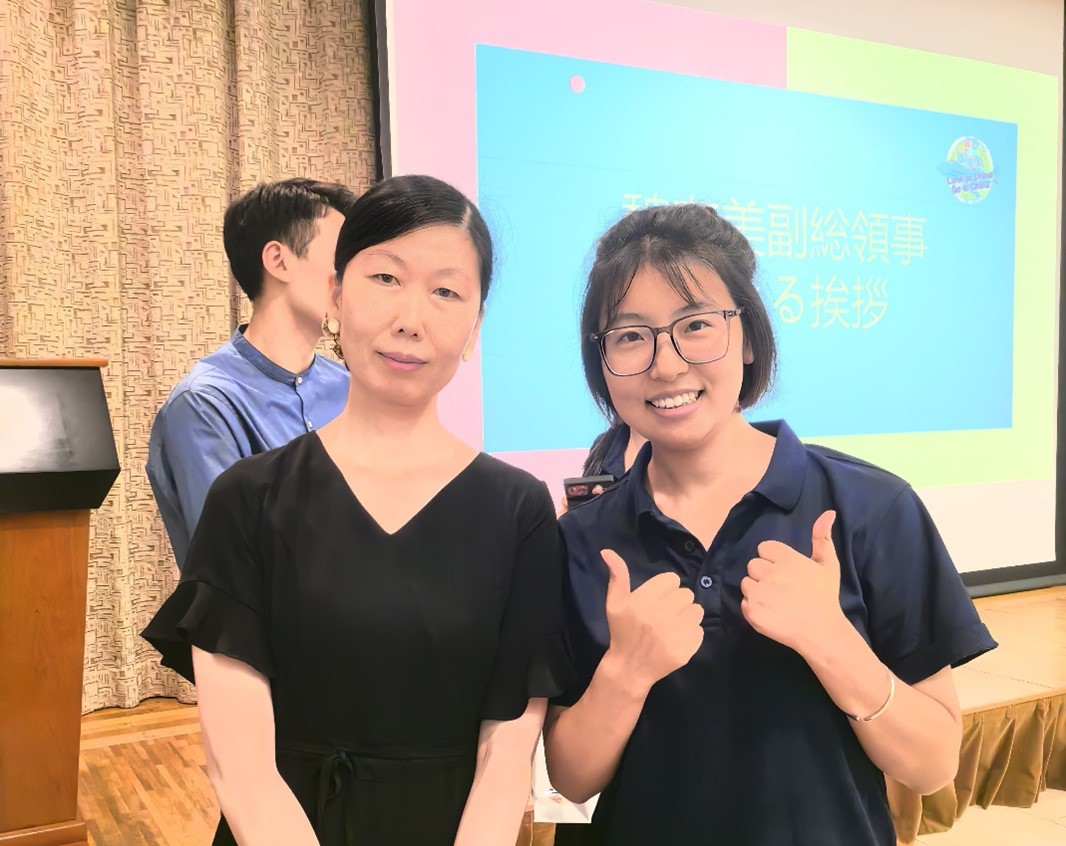 黄婷婷同学与中国驻大阪总领事馆副总领事魏有美合影留念