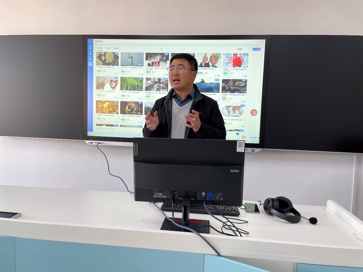 教师讲解了“OneClass外语教学系统”的使用方法,以及该系统如何辅助教师进行外语听力、同声传译、交替传译等课程教学。