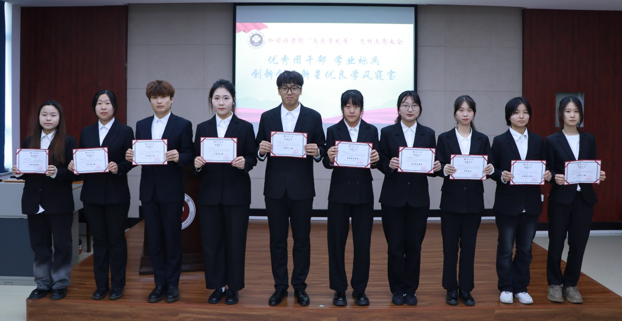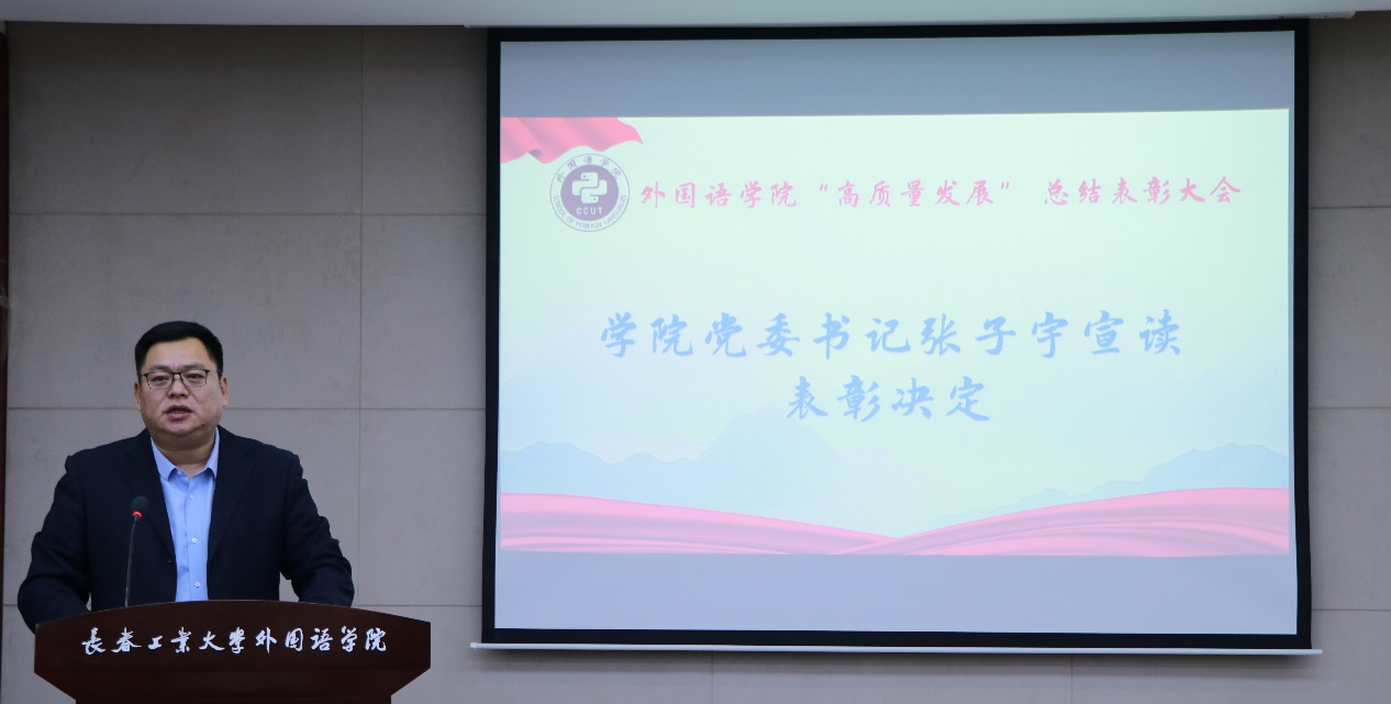 “高质量发展”总结表彰大会在学院多功能报告厅内隆重举行。学校教务处处长冉旭、招生就业处处长付宏波、校团委书记邵捷、教师教学发展中心主任常青、学生工作处副处长赵海涛应邀出席大会并为受表彰代表颁奖。学院党委书记张子宇、院长王轶、学院班子其他成员、全体教师及受表彰学生代表参加大会。总结表彰大会由学院党委副书记刘凤利主持。
