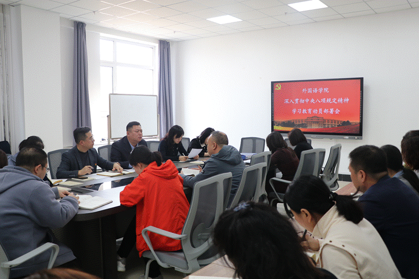 深入贯彻中央八项规定精神学习教育动员部署会在433会议室召开。学院领导班子成员、党委理论学习中心组成员、各党支部书记、各系部主任、副主任参加会议。学院党委书记张子宇主持会议。