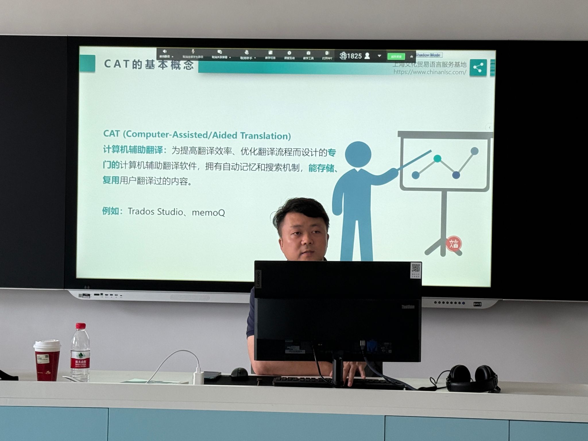 张园首先阐述了Trados Studio作为全球领先计算机辅助翻译(CAT)工具的核心价值及其在语言服务行业中的地位。之后详细介绍了软件的核心功能,特别是其强大的翻译记忆库与术语管理系统。在他的指导下,参会教师系统地学习了该软件的操作流程,从新建翻译项目、导入待译文件,到高效利用翻译记忆库实现自动匹配,再到精准应用术语库保障术语一致性。他通过结合实际翻译案例,生动展示了Trados进行翻译的全过程。