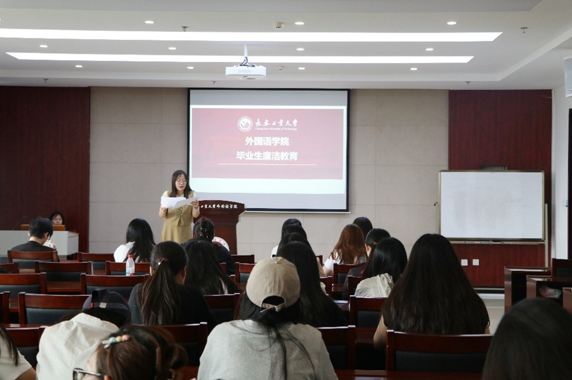 本网讯(通讯员 赵子文)为扎实做好2025届高校毕业生党员廉洁教育工作,6月17日,学院在多功能报告厅开展以“筑牢廉洁防线 扣好职场扣子”为主题的毕业生廉洁教育活动。学院党委副书记刘凤利,专职组织员、毕业班辅导员谭密和2025届毕业生参加活动。