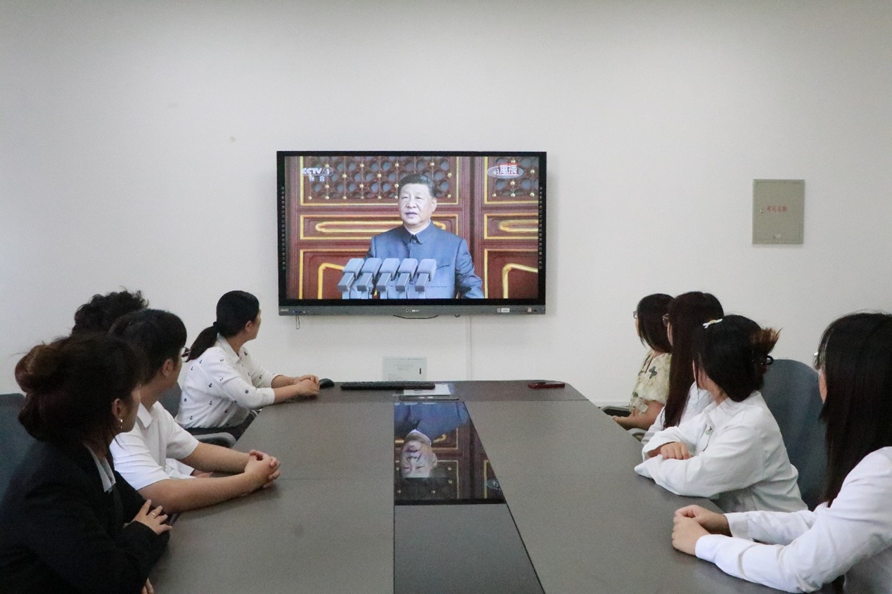 师生齐聚学院会议室,观看盛大阅兵仪式现场直播,见证震撼瞬间与国家强军兴军的壮丽篇章,感受新时代中国的磅礴力量。