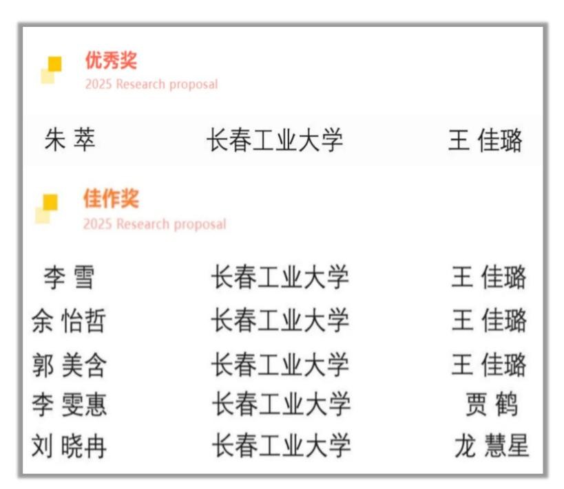 学子的多份作品在大赛中脱颖而出。其中,朱萃同学凭借逻辑严谨、创新性强的研究计划书荣获优秀奖;李雪、余怡哲、郭美含、李雯惠、刘晓冉五位同学以扎实的内容架构、清晰的研究思路荣获佳作奖。