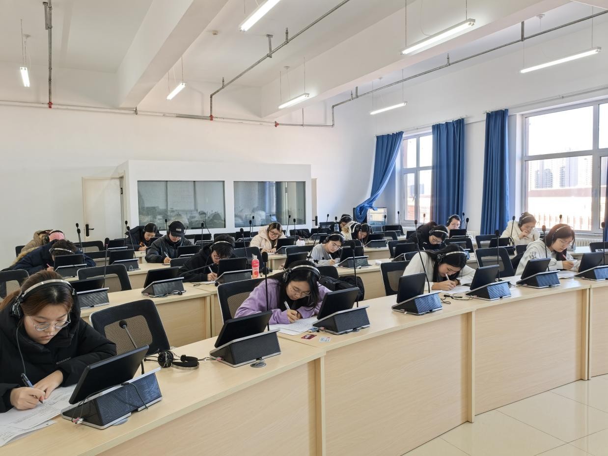 考试期间,考场内没有监考老师巡视,却始终保持着安静肃穆的氛围。同学们凝神审题、专注作答,笔尖在试卷上沙沙作响,时而低头思索,时而提笔书写,翻译题的精准措辞、阅读理解的细致分析、写作题的谋篇布局,每一个环节都展现着外院学子的专业素养与自律品格。学院通过视频监控实时保障考试公平,巡考人员每半小时进行一次场外巡查,全程未发现任何违纪作弊行为。