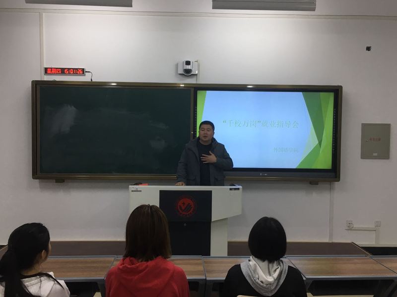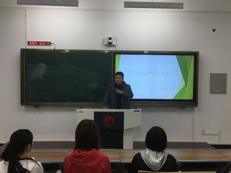 建档立卡的贫困同学给予关怀和帮助,在11月7日下午2点半于教学主楼433教室召开了“千校万岗”就业指导会。