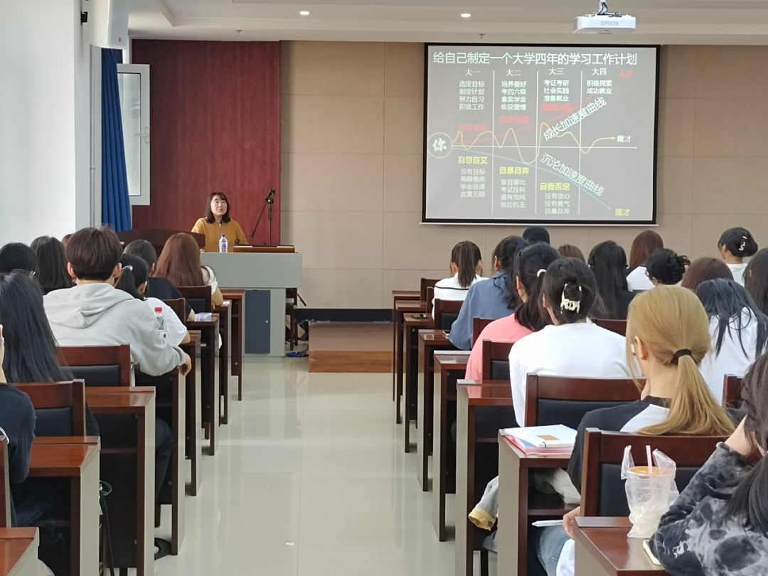 专业的培养目标、学习内容以及毕业要求。针对自身情况,同学们认真思考,在学业、生活方面等问题进行互动交流,刘明慧老师认真倾听同学们的问题并耐心地为同学们答疑解惑。