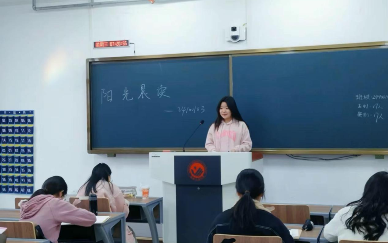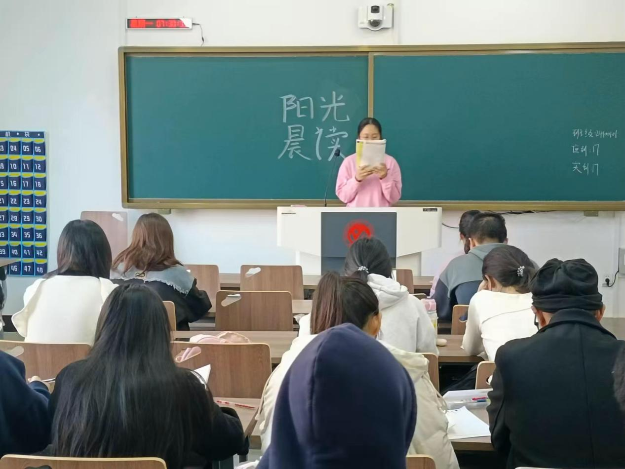 本次晨读活动面向学院2024级学生,旨在全方位提升同学们的语言能力与专业素养。在自习室里充满着学子们的朗朗读书声,以诵读方式开启每日学习。晨读是学生们提升语言能力的重要途径,不仅能锻炼口腔肌肉、优化发音清晰度与流畅度,更可增强口语表达的流利度与感染力,为同学们自我提升提供有效助力。