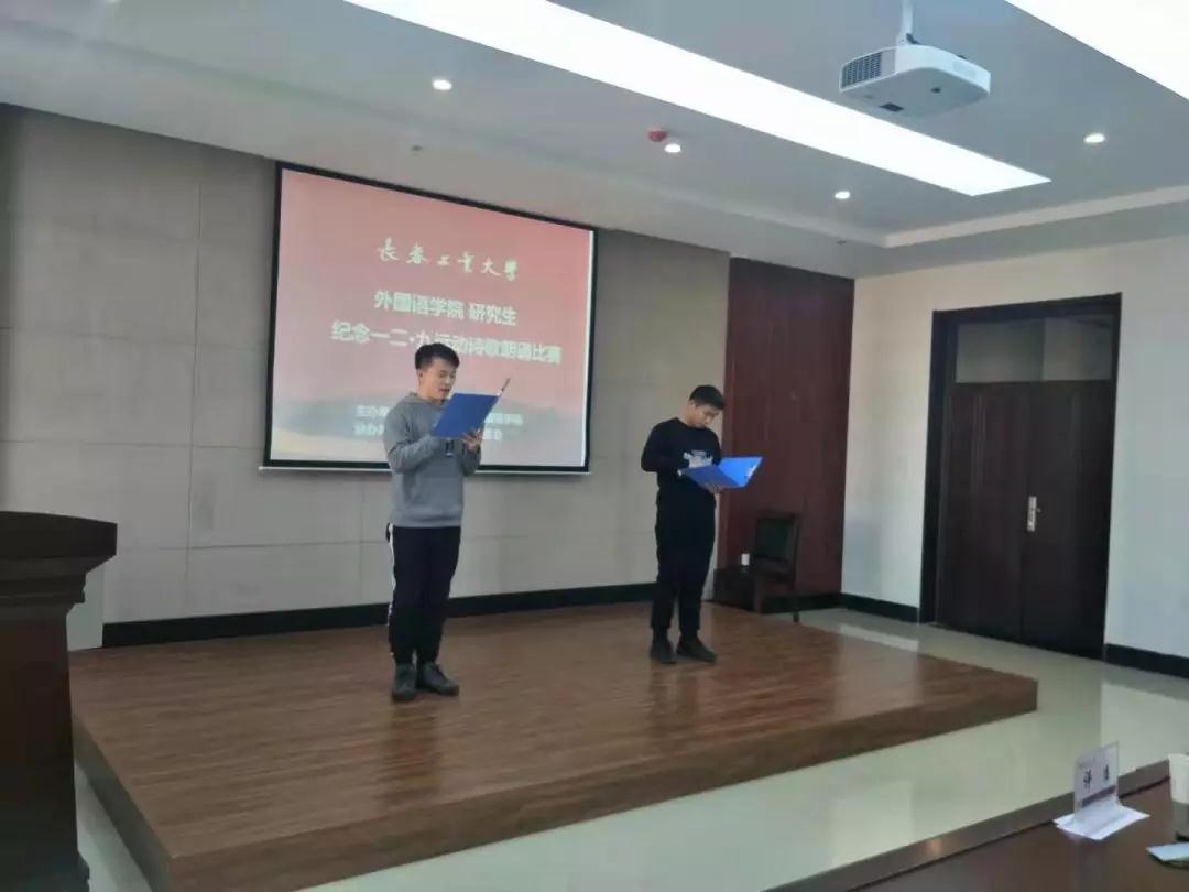 研究生纪念一二•九运动诗朗诵比赛,同学们以圣洁的诗歌,抒发着对历史的缅怀,对祖国美好未来的期待。或沉重或激昂的朗诵,传递着浓浓的情谊,表达了作为华夏儿女的自豪。